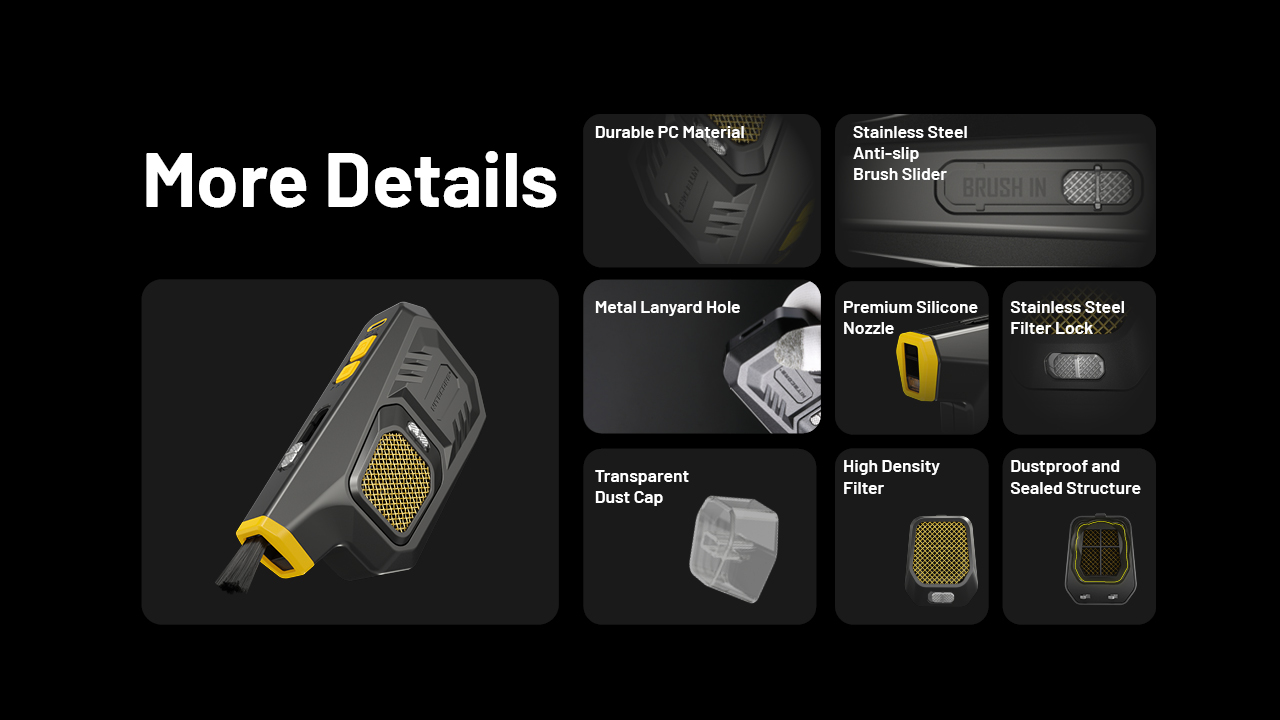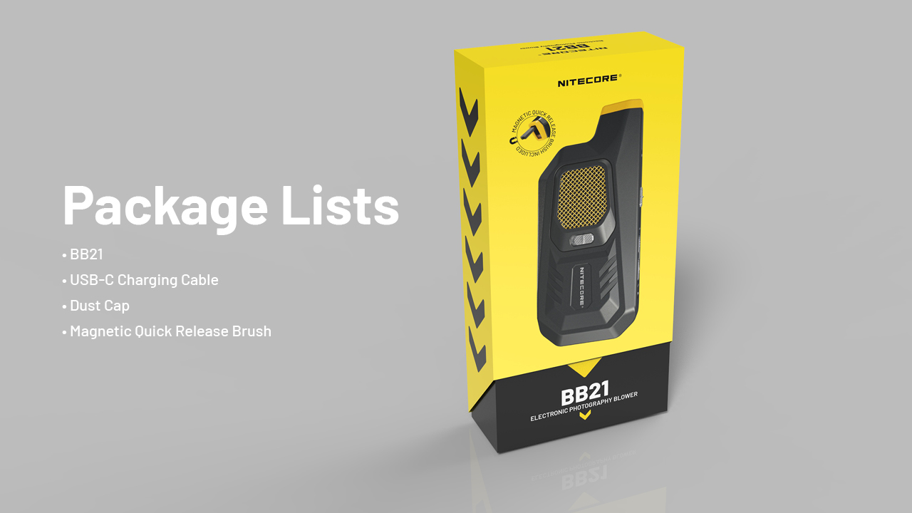 Accessories: USB-C Charging Cable, Dust Cap, Magnetic Quick Release Brush